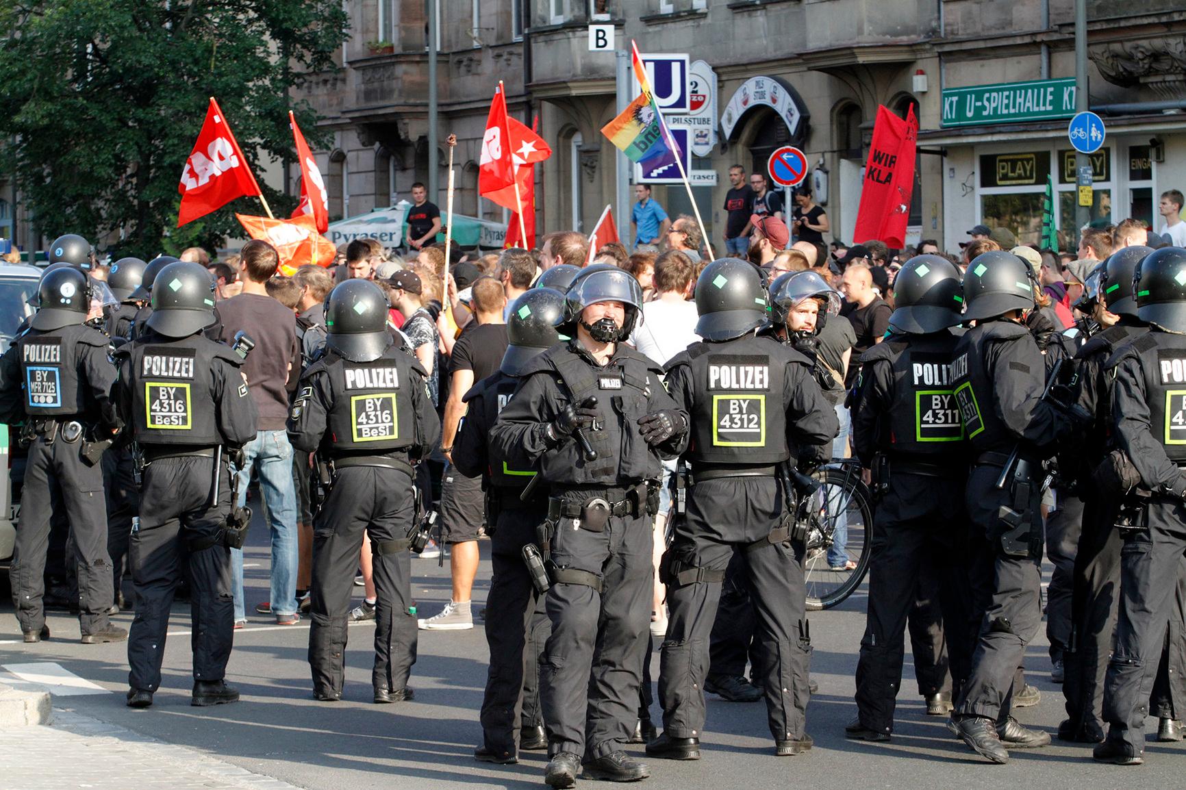 Eine Anmeldung der Rechten und vier Anmeldungen von Nazi-Gegnern gingen in der vergangenen Woche beim Ordnungsamt für diesen Termin ein. Zunächst wollten die Rechten am Jamnitzer Platz direkt vor dem linken Stadtteilladen "Schwarzen Katze" demonstrieren.